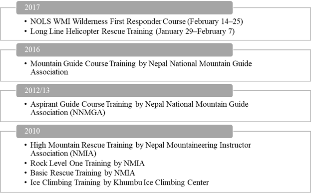 - Began mountain adventure career as a trekking guide in 2000, progressing to high-altitude climbs and technical guiding roles by 2005.